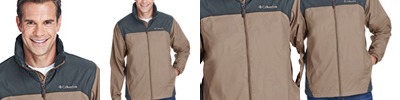 2.5 oz., 100% nylon Omni-Tech™; waterproof and breathable shell; 100% polyester mesh lining; Fully seam-sealed; Adjustable storm hood; Adjustable drawcord at bottom hem; Zippered hand pockets; Packs into pocket; Embroidered Columbia logo on left chest.