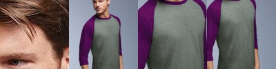 • Contrast color set-in collar and three-quarter length raglan sleeves