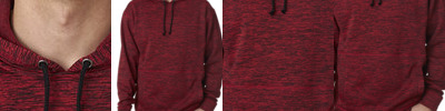 7 oz., 100% spun polyester fleck fleece; Contrast zipper and front pouch pocket; Thumbholes on cuffs;