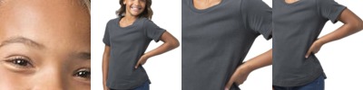 - 4.4-ounce, 75/13/12 poly/cotton/rayon jersey with PosiCharge technology