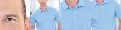 - Three-button placket with contrast inside placket