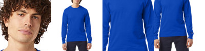 100% ComfortSoft® cotton; Double-needle stitching throughout; Seamless rib at neck; Rib knit cuffs and shoulder-to-shoulder tape; Dyed in the USA; No two are exactly alike; Wash separately;