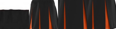 - Contrast color pressed box pleats with yoke
