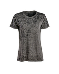 4 oz., 50% cotton, 50% polyester burnout jersey; Acid-washed with silicone finish; Self-fabric collar;
