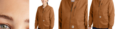 The classic bomber done the Carhartt way. This women's jacket is as functional as it is comfortable, thanks to built-to-move Rugged Flex technology. 8-ounce, 98/2 cotton/spandex canvas Mesh lining for breathability Rugged Flex ® technology for ease of movement Rib knit collar, cuffs and waistband Left chest pocket with zipper closure Interior pocket Two lower front pockets Carhartt-strong, triple-stitched main seams Carhartt label sewn on left pocket Carhartt Warmth Rating Earned: Level 1â¿¿Warm Relaxed fit