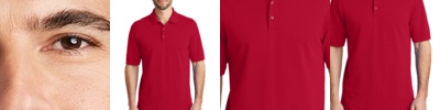 Contoured side seams and 4-button placket add dash to this stain-resistant jersey knit shirt.